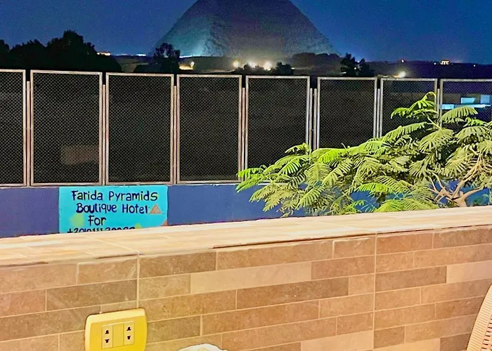 في الفندق ستكون على بعد 1.5 كم عن تمثال أبو الهول بالجيزة ومباشرة بالقرب من Pyramid of Khentkawes. يمكن للضيوف الوصول إلى مركز مدينة Kafret el-Gabal الذي يبعد مسافة 1 كم. ستجد عروض الصوت والضوء بالأهرامات على مقربة من Farida Pyramids Boutique. لأولئك الذين يسافرون من مسافات بعيدة، يمكن الوصول الى مطار القاهرة الدولي في غضون 30 دقيقة بالسيارة.